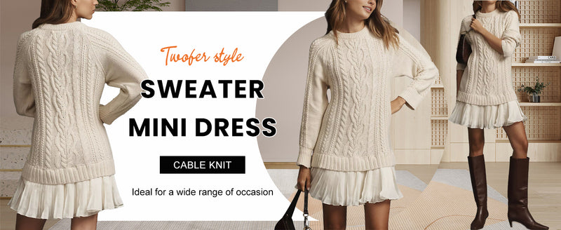 BACK IN STOCK 🔥 Women Round Neck Sweater Spliced Casual Dress