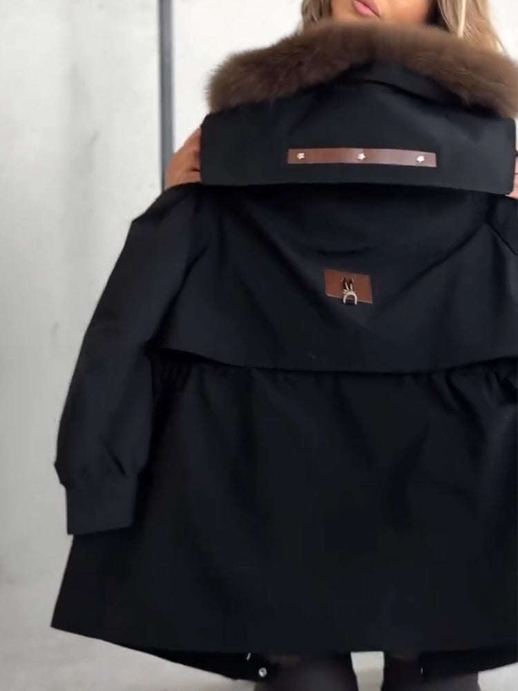 Women Fur Collar Hooded Casual Cotton Jacket