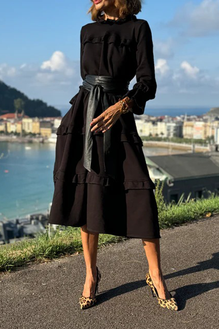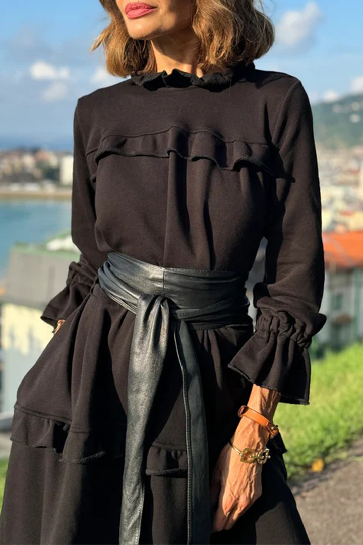Ladies' Round Neck Solid Color Splicing Casual Loose Fit Dress