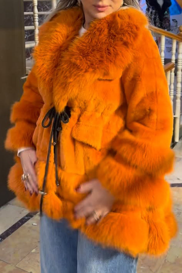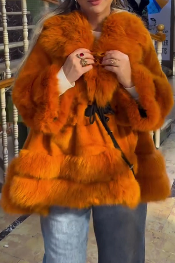 Women Casual Double Plush Lace-up A-line Coat