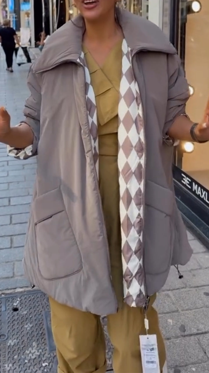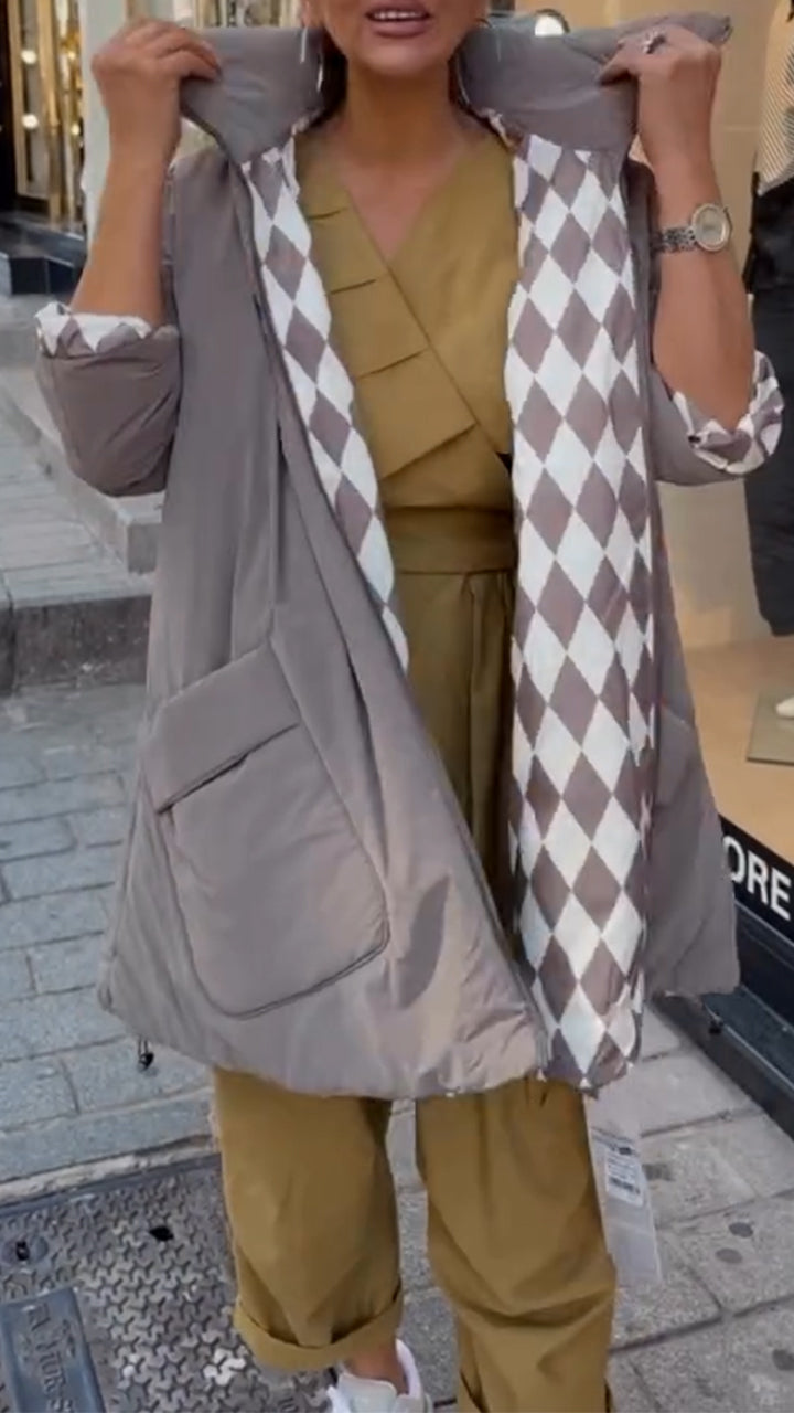 Women Lapel Internal Grid Pattern Style Casual Cotton Coat