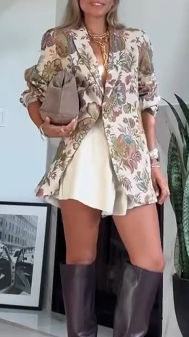 Women Lapel Printed Temperament Casual Jacket