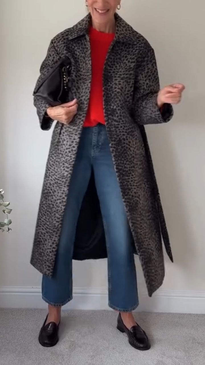 Women Lapel Printed Temperament Casual Windbreaker Jacket