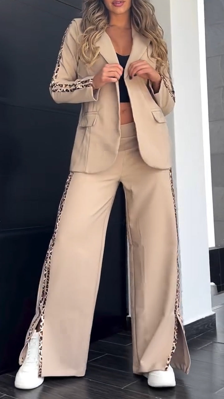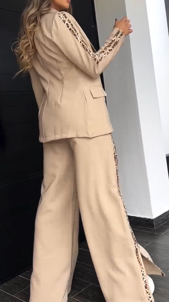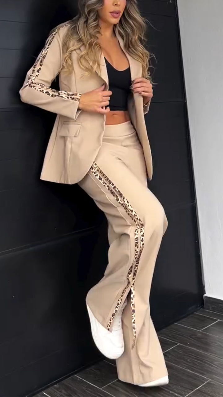 Women Lapel Side Vertical Stripe Print Jacket + Pants Temperament Commuter Suit