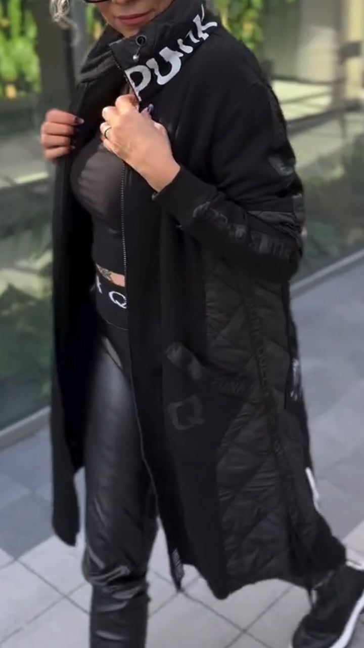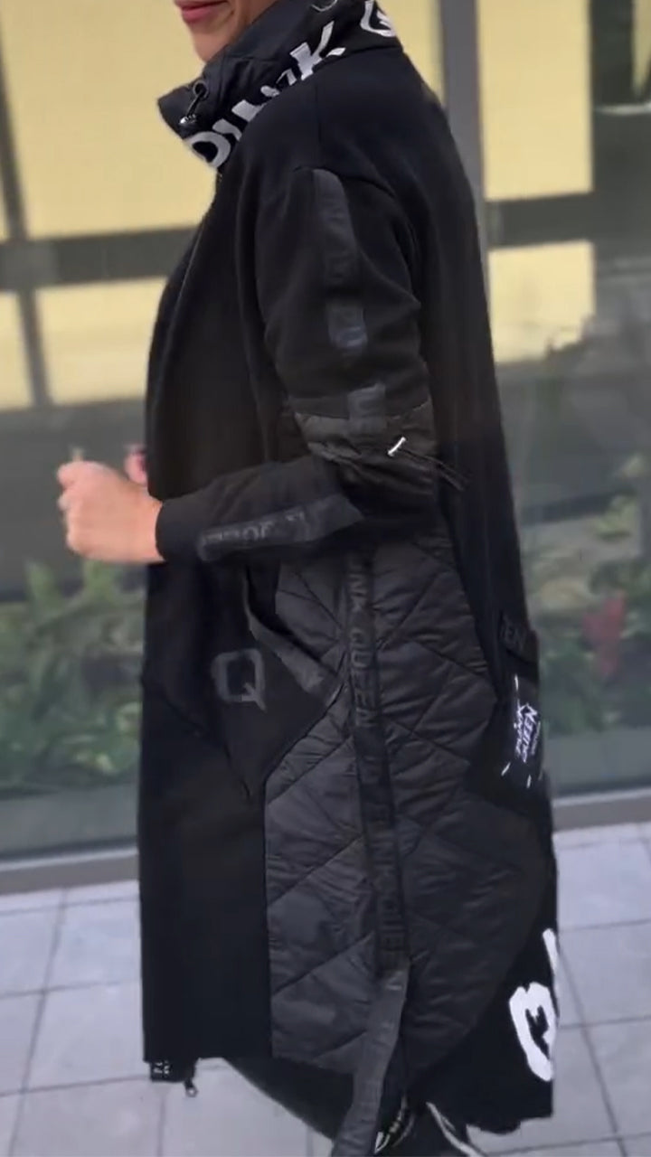 Women Stand Collar Printed Letters Temperament Casual Long Jacket
