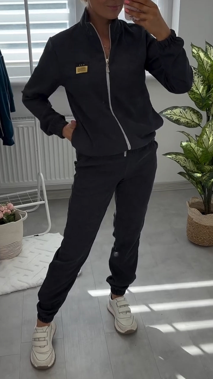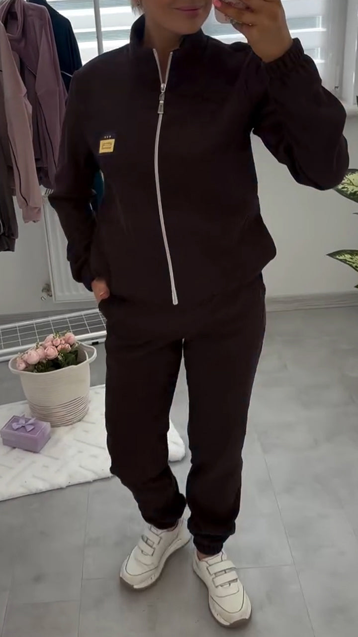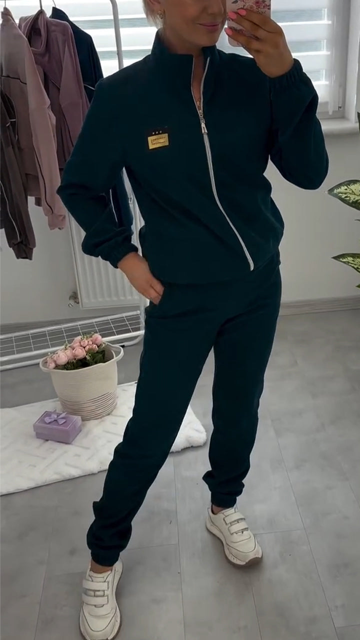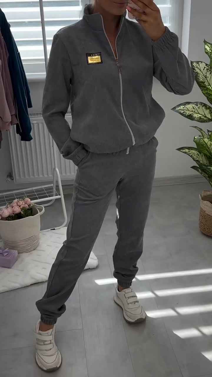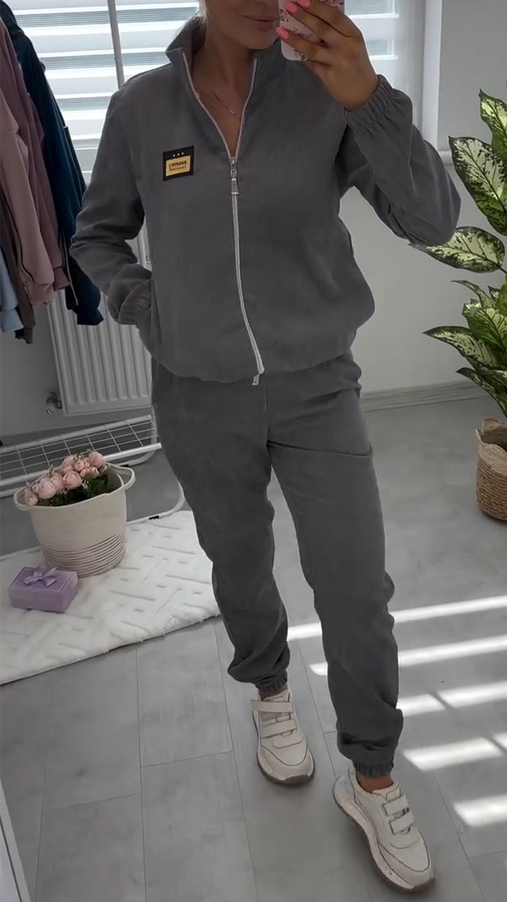 Women Stand-up Collar Zipper Jacket + Pants Casual Suit