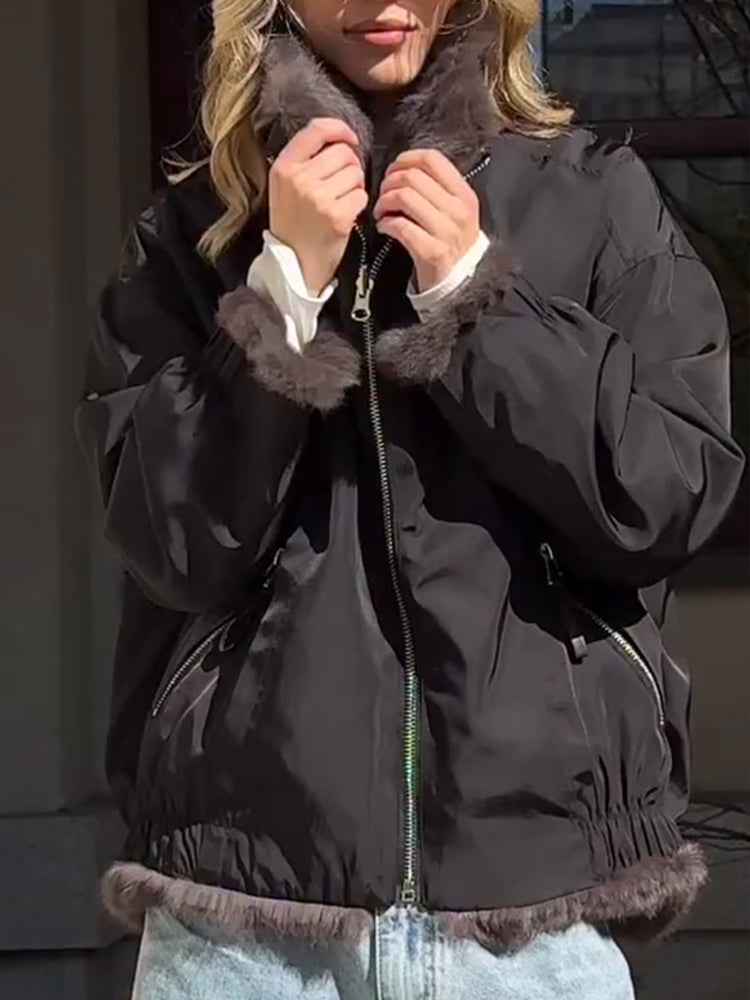 Women Standing Collar Reversible Casual Plush Coat