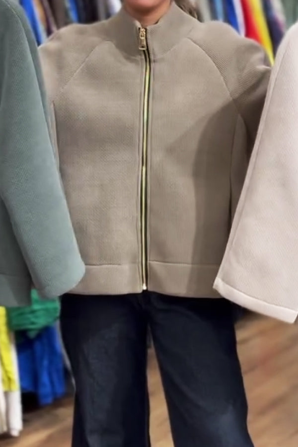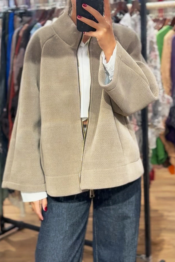 Women Casual Simple High Neck Metal Zipper Wide Sleeve Jacket
