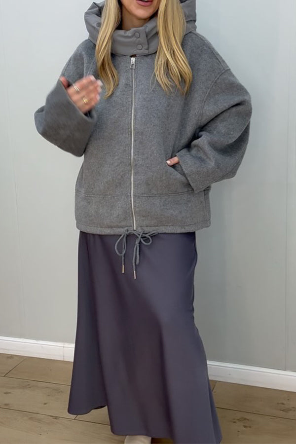 Women Casual Stand Collar Drawstring Zipper Warm Jacket