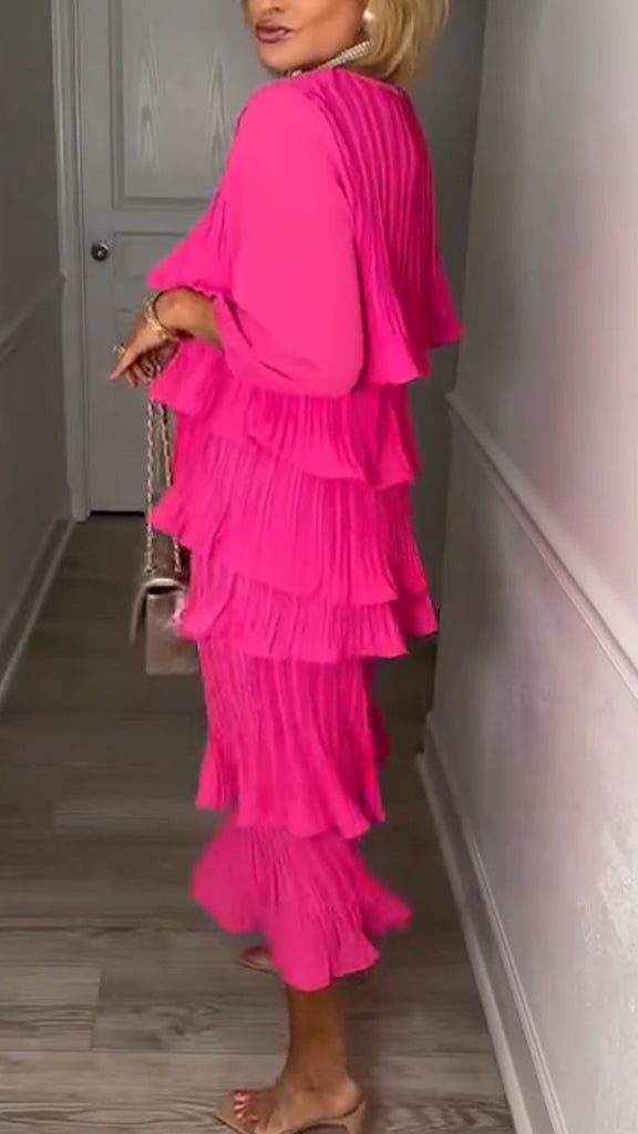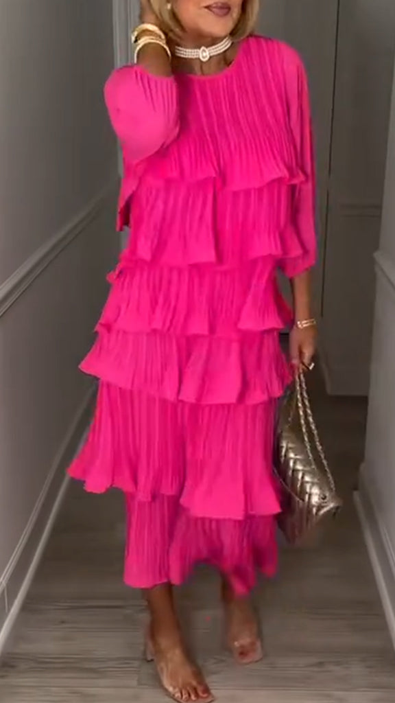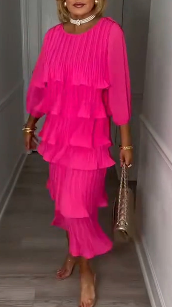 Women Round Neck Layered Stitching Solid Color Wedding Elegant Temperament Dress