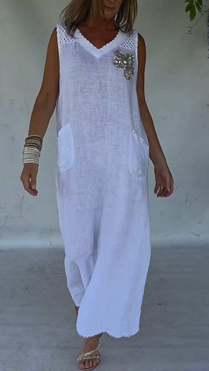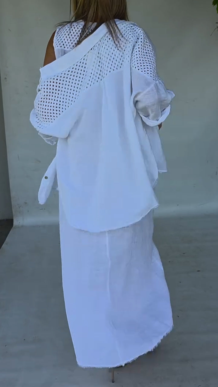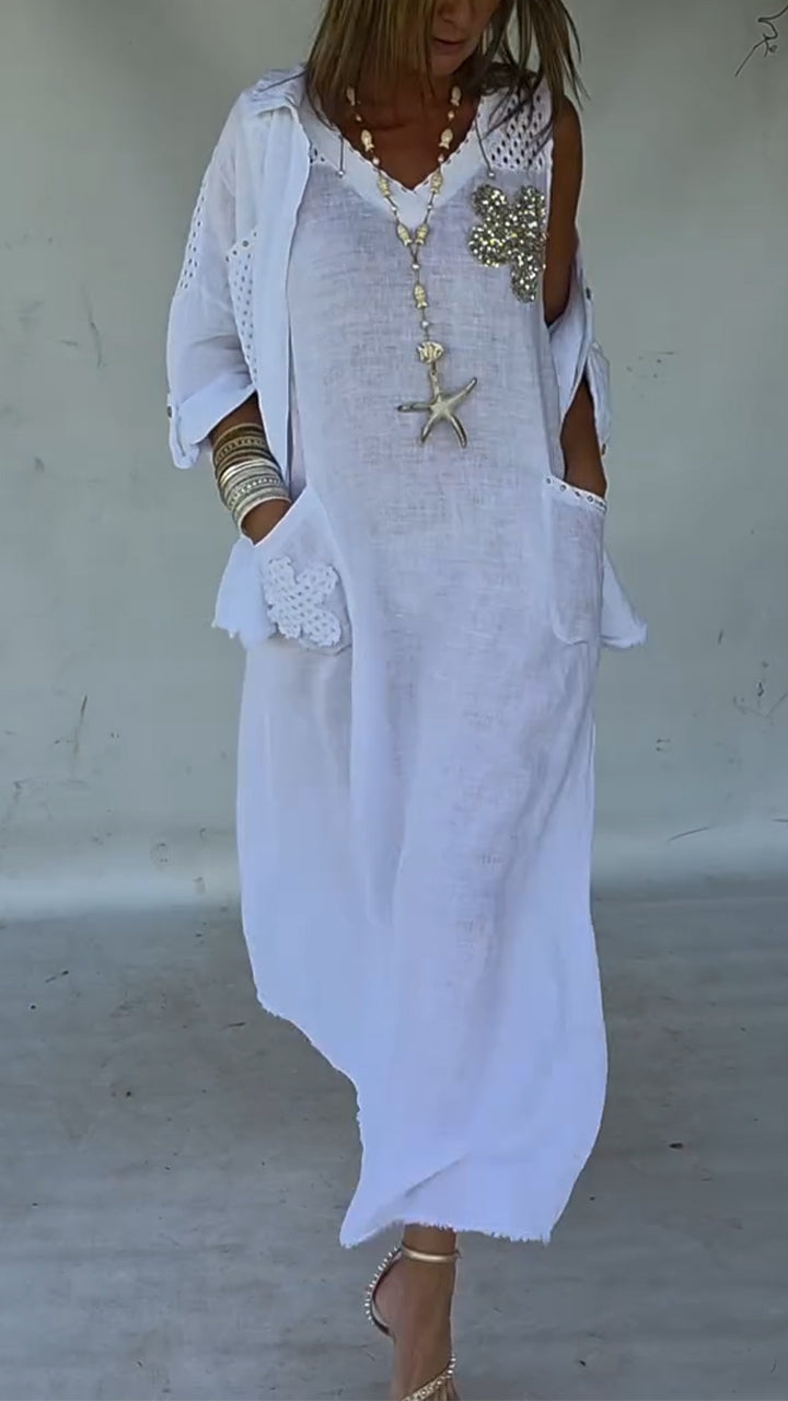 Women V-neck Dress + Cardigan Solid Color Casual Suit