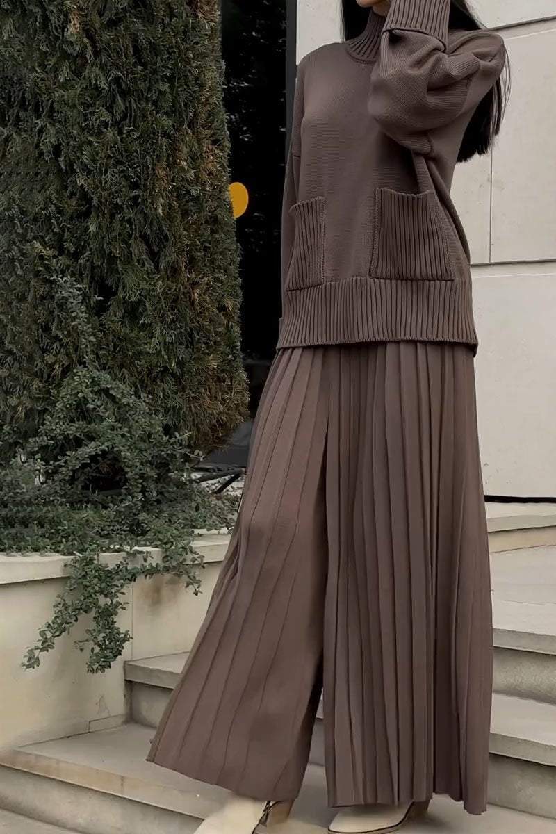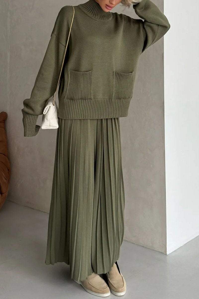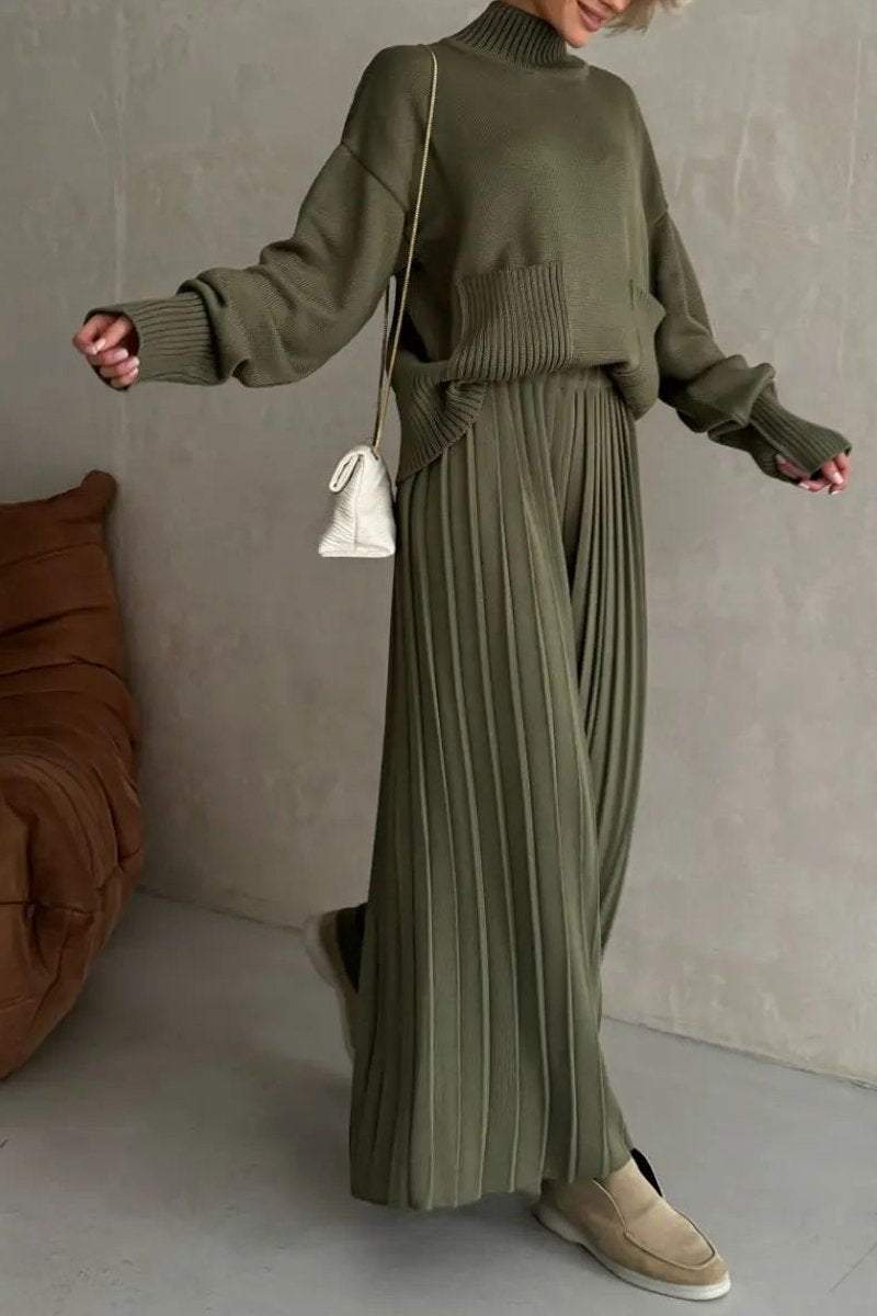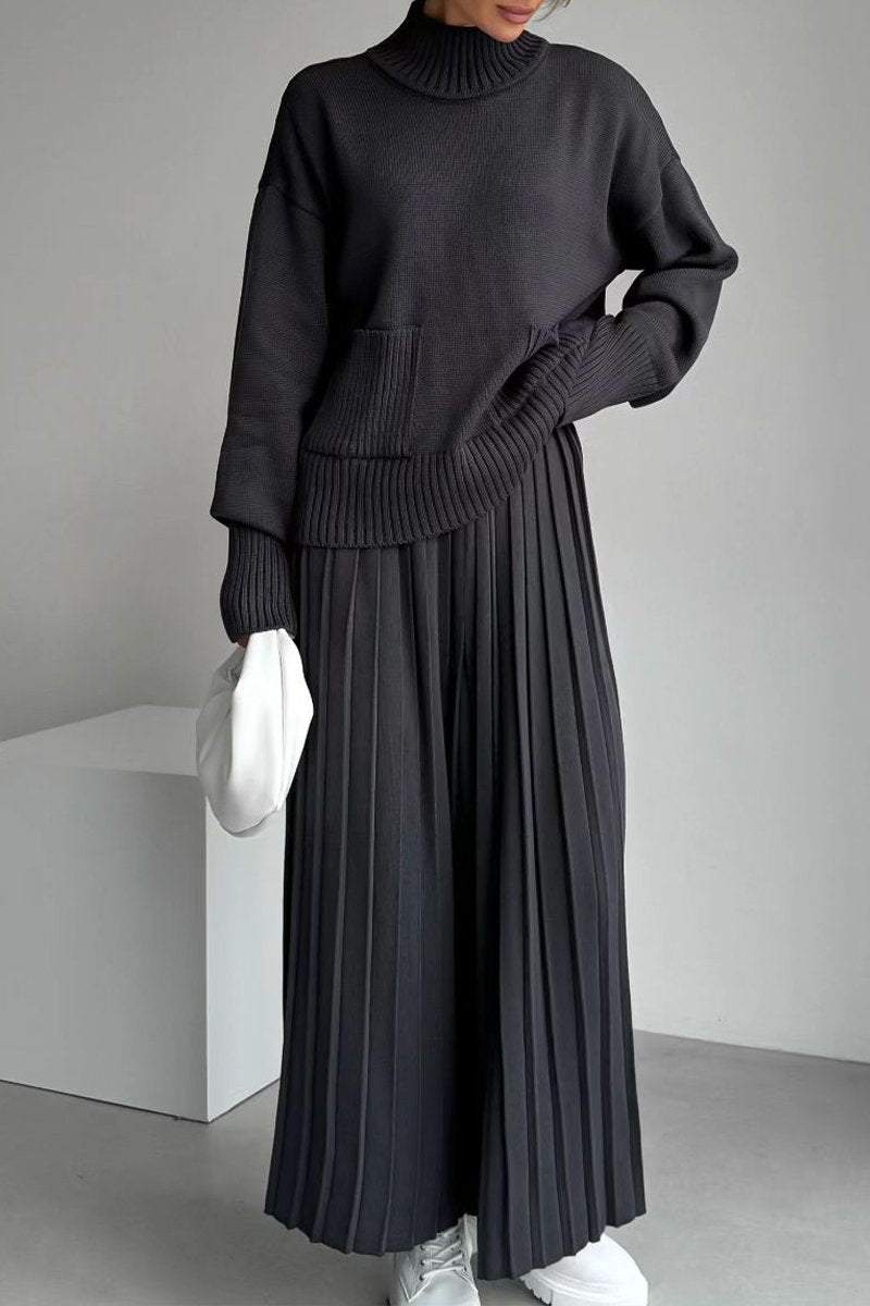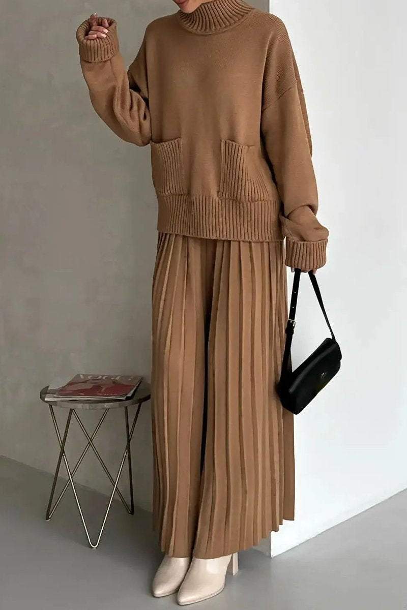 Women's Turtleneck Long Sleeve Sweatshirt Two Piece Set
