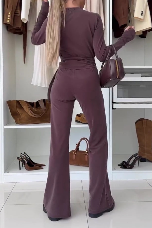 Women Elegant Deep V Slim Fit T-Shirt+Pants Suit