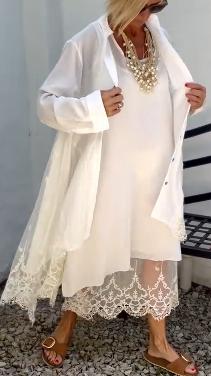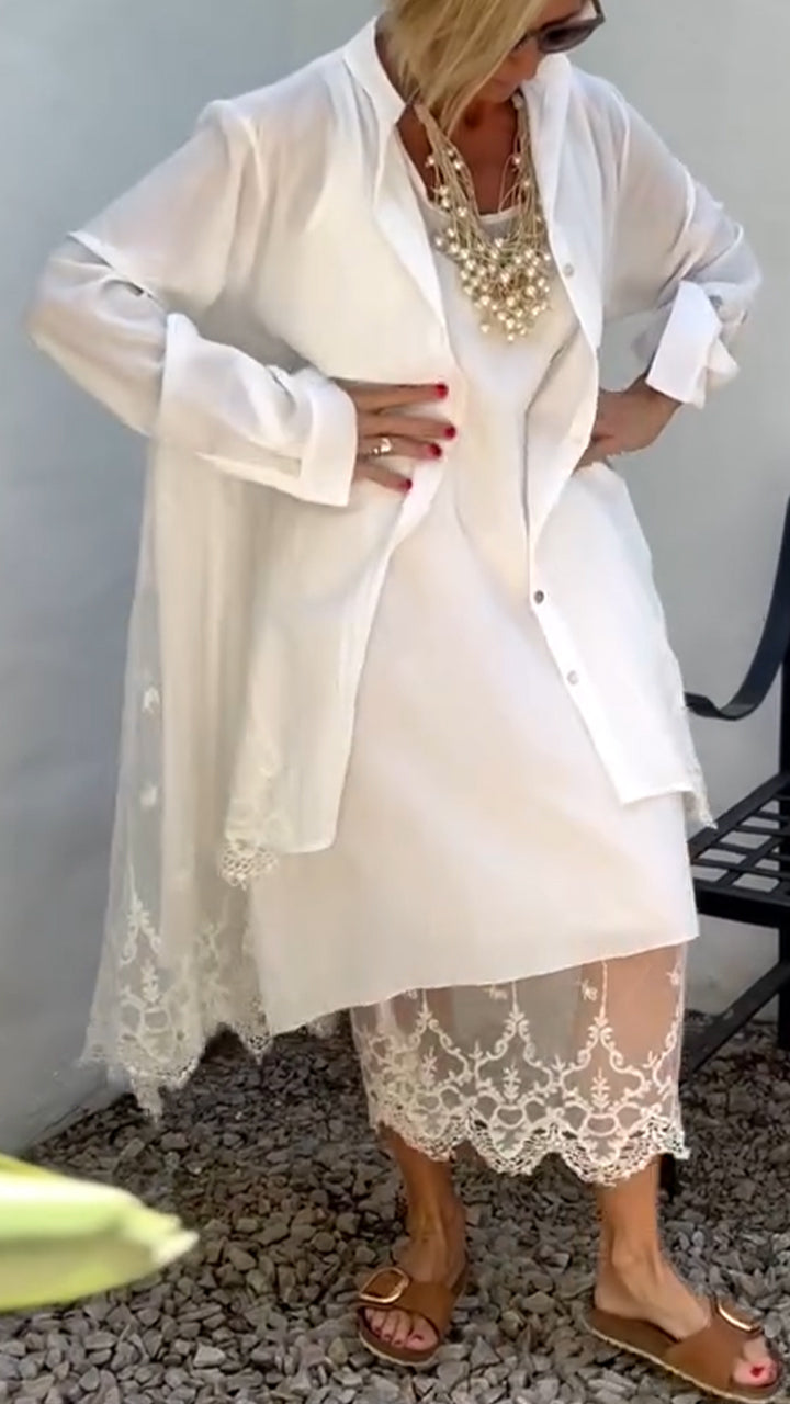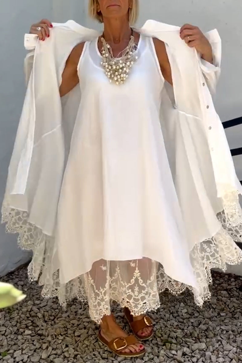 Women Inner Patchwork Printed Dress + Lapel Printed Cardigan Casual Suit