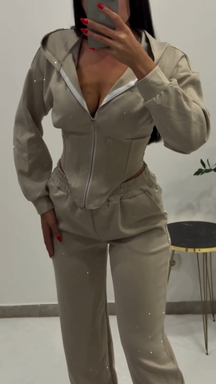Women Lapel Irregular Hot Diamond Top + Pants Casual Suit