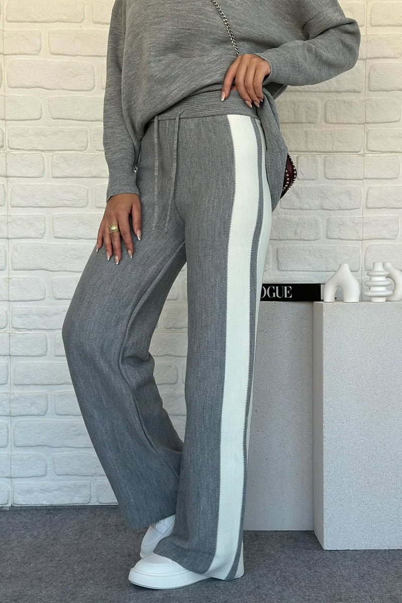 Women Round Neck Vertical Striped Casual Suit