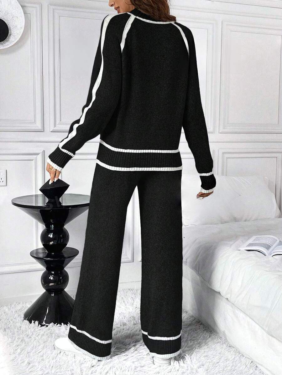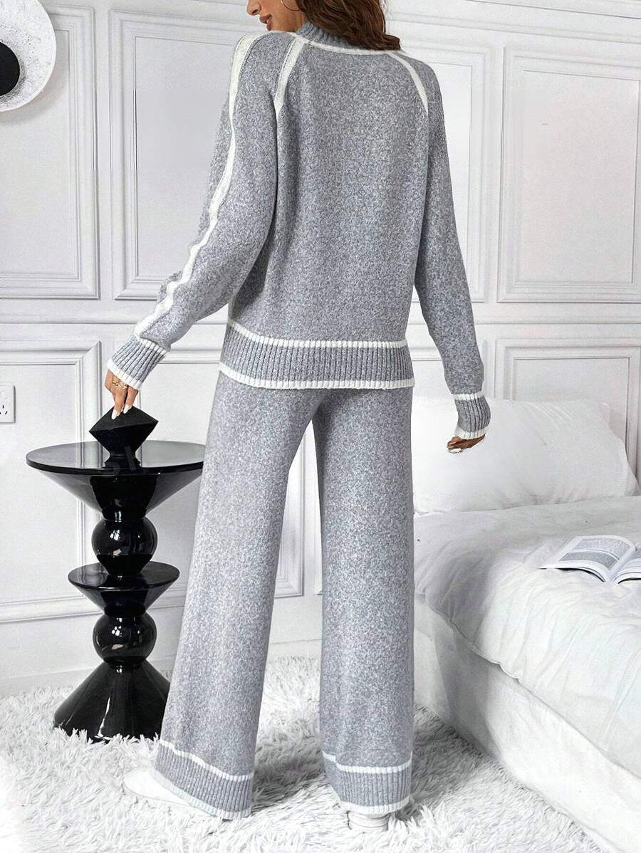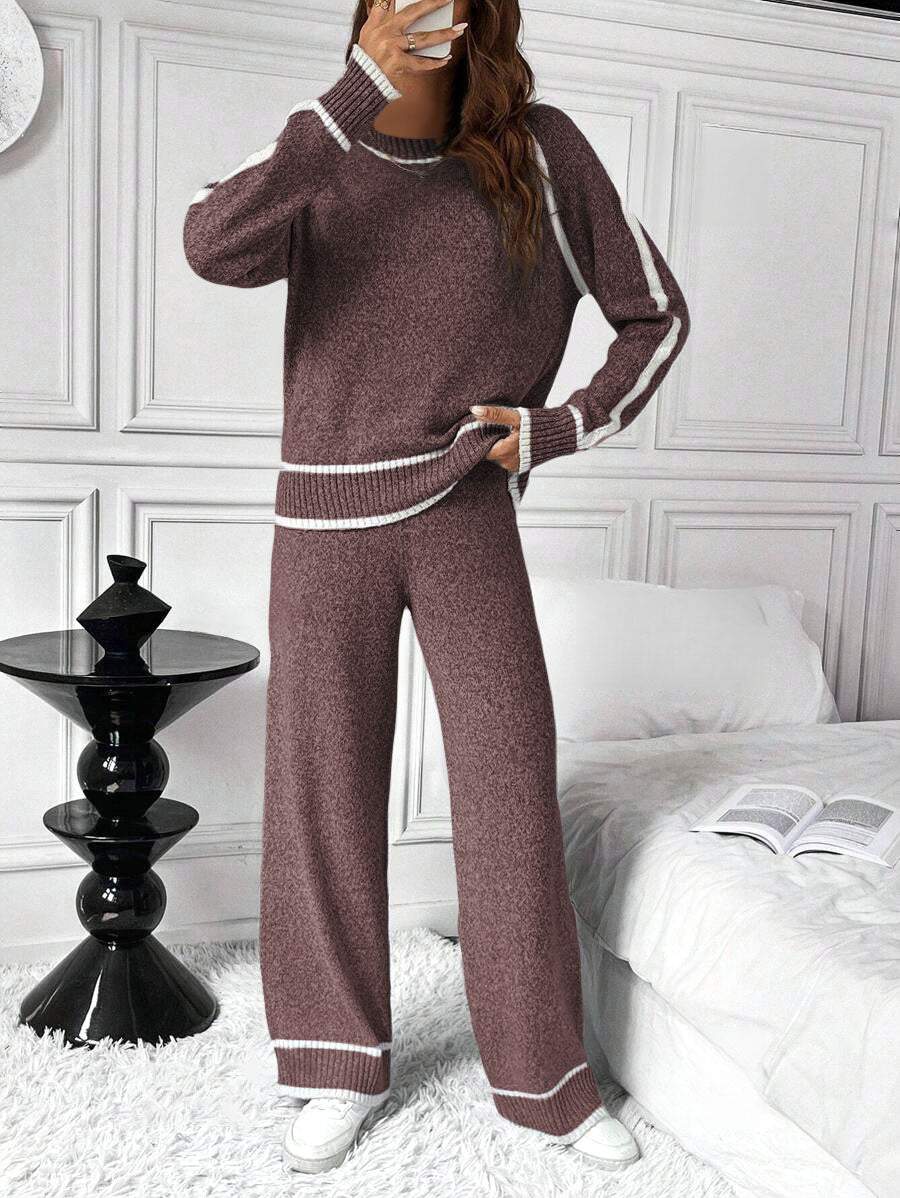 Women's Casual Round-neck Contrast Color Two-piece Suit