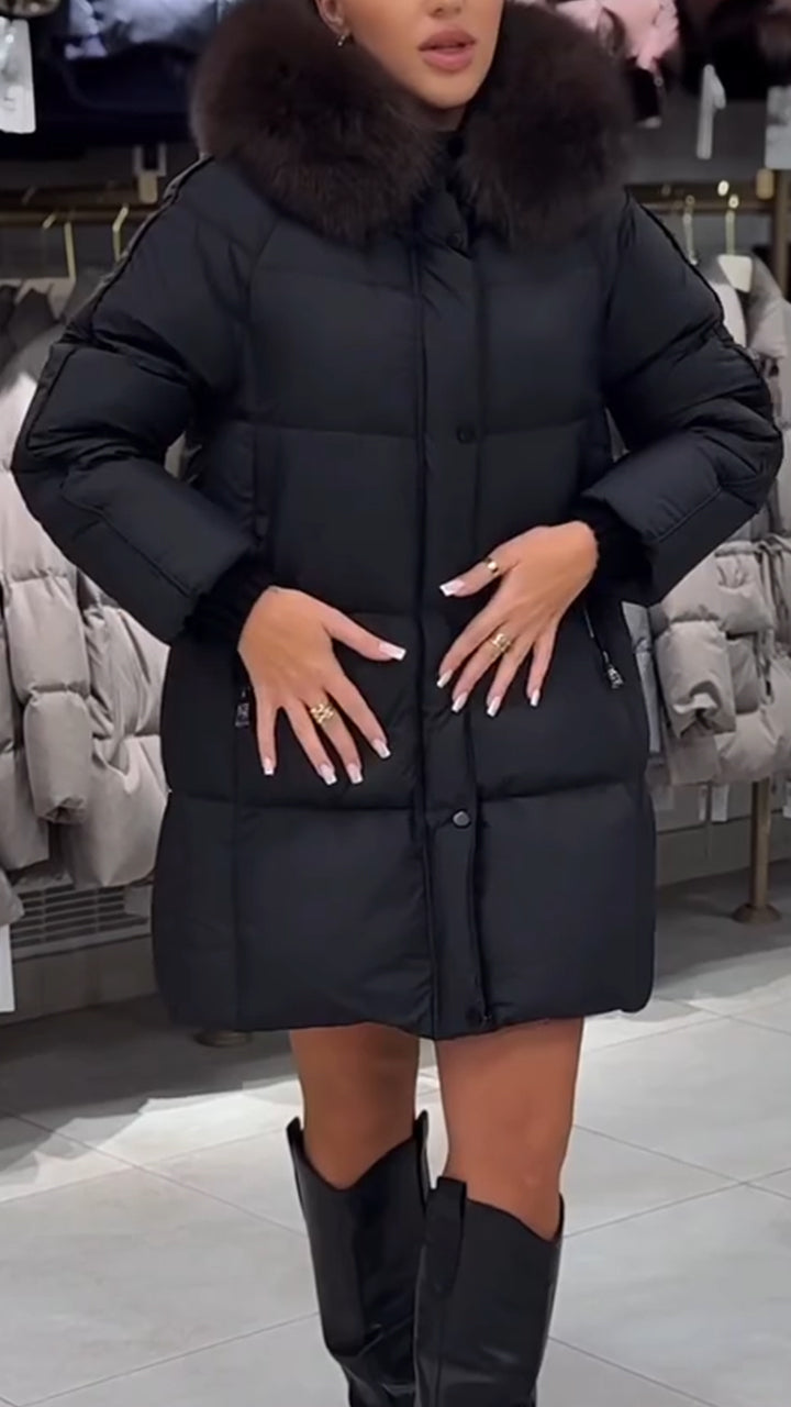 Women Fur Collar Solid Color Casual Cotton Jacket