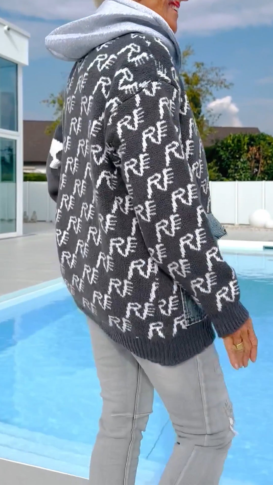 Women Patchwork Knitted Fake Two-piece Casual Jacket