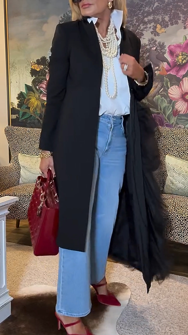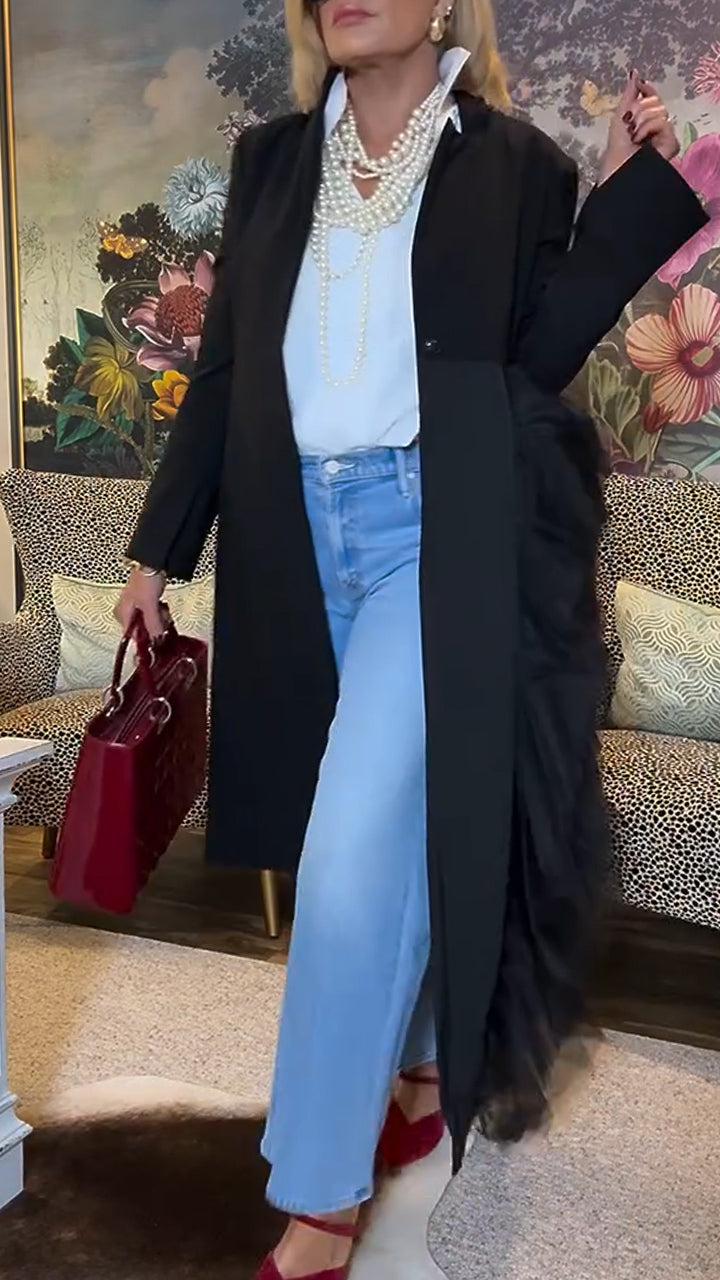 Women Patchwork Mesh Irregular Temperament Casual Coat
