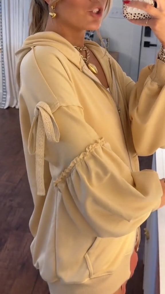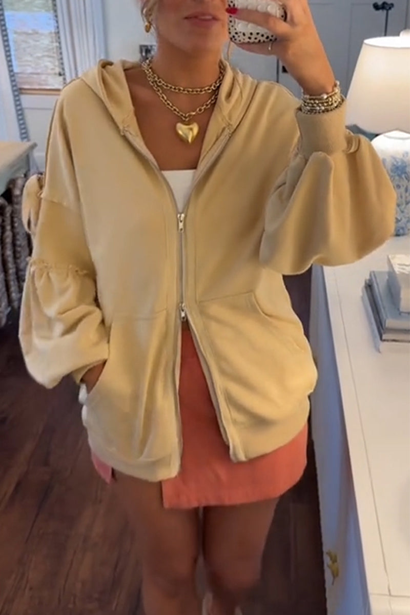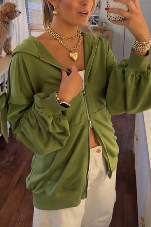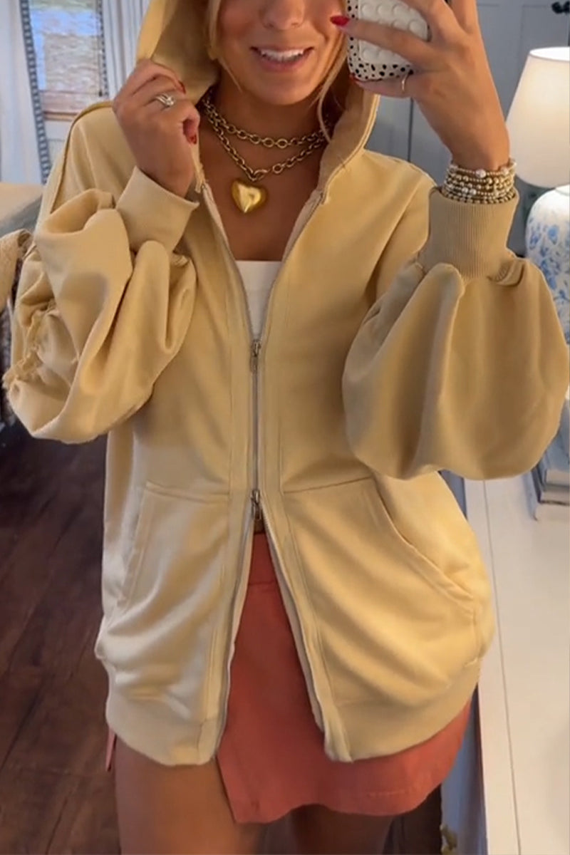 Women Round Neck Hooded Patchwork Casual Zip-up Hoodie
