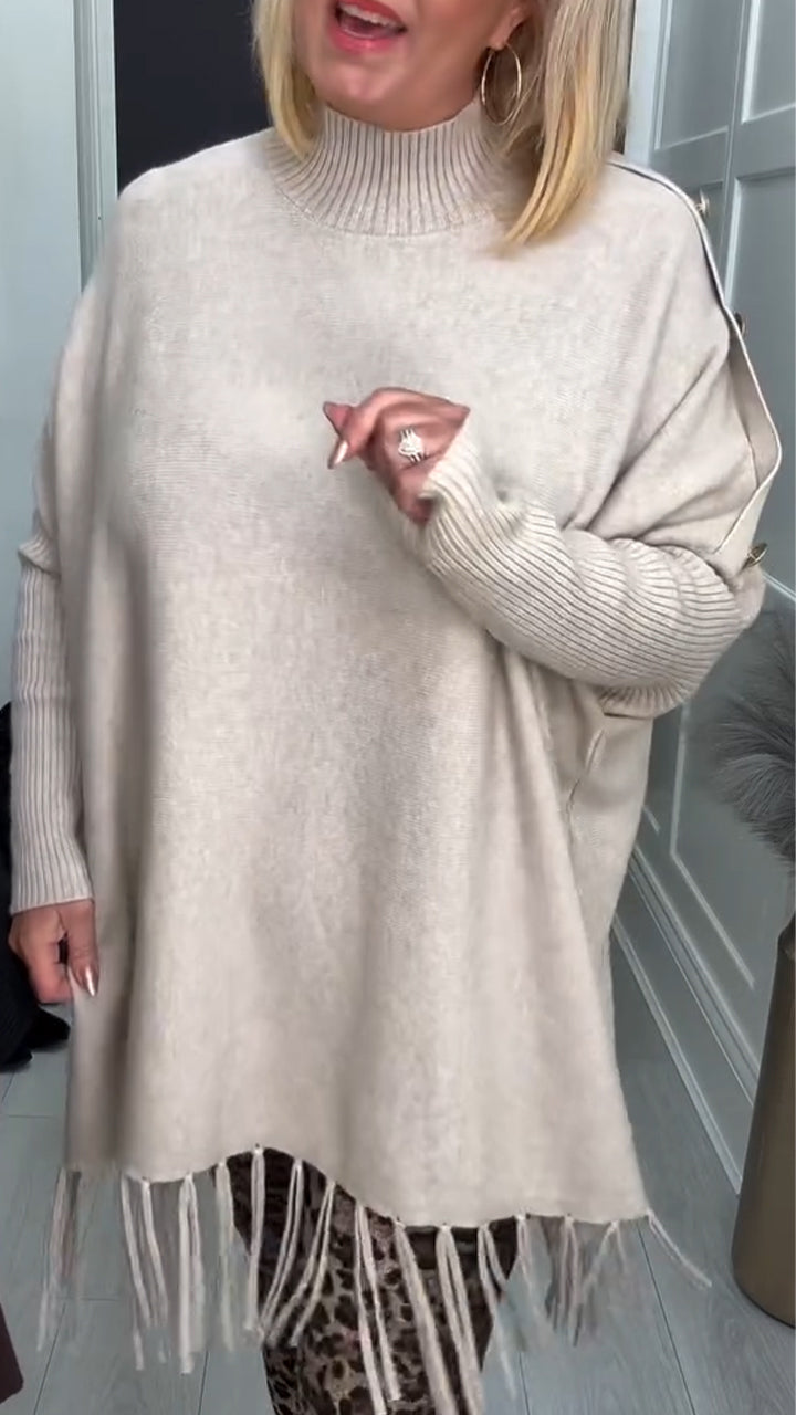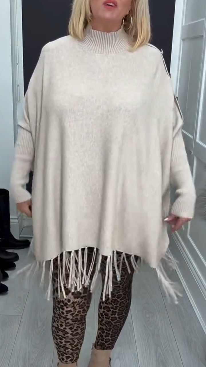 Women Round Neck Knitted Patchwork Tassel Casual Top
