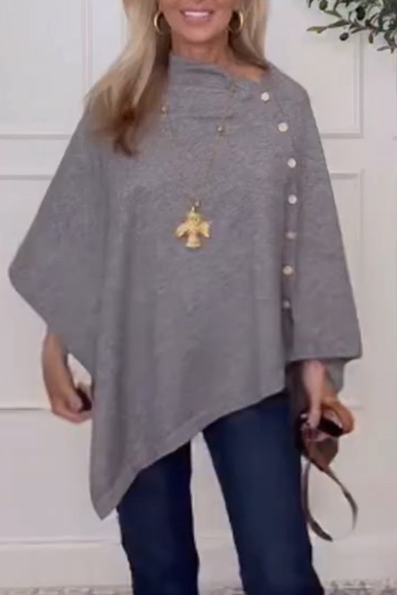 Women Round Neck Side Button Irregular Casual Top