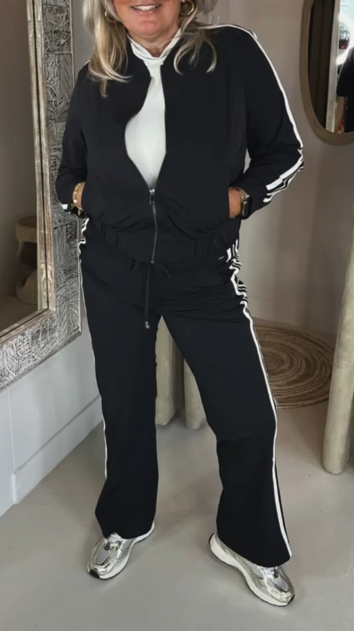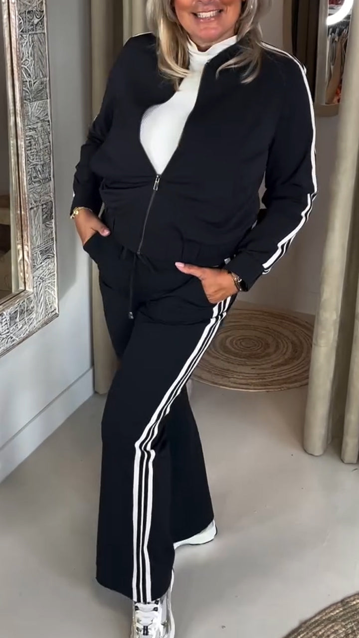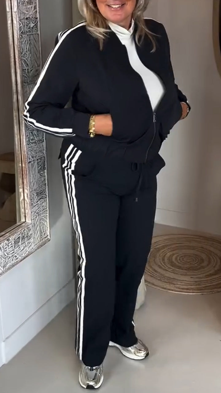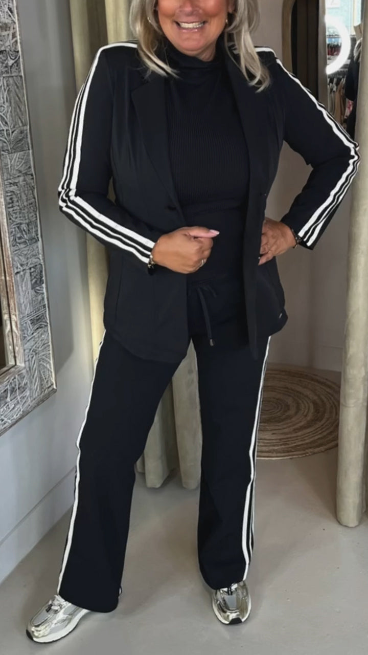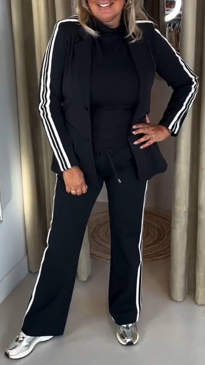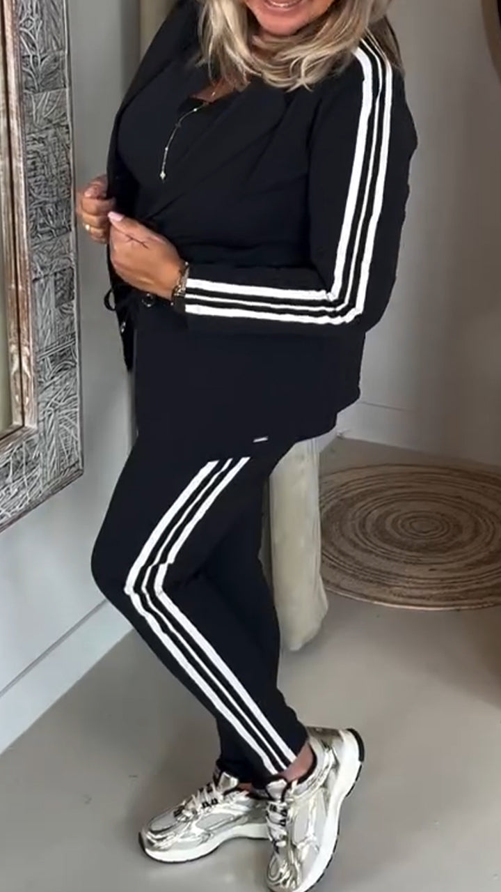 Women Lapel Vertical Striped Jacket + Pants Commuter Suit