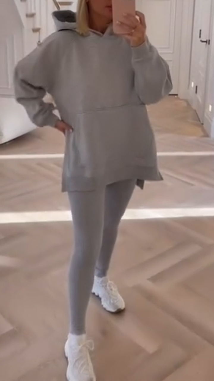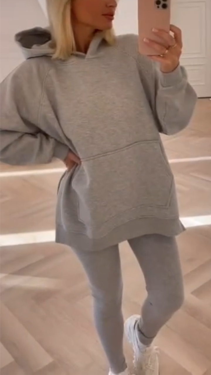 Women Round Neck Hooded Sweatshirt + Pants Casual Suit