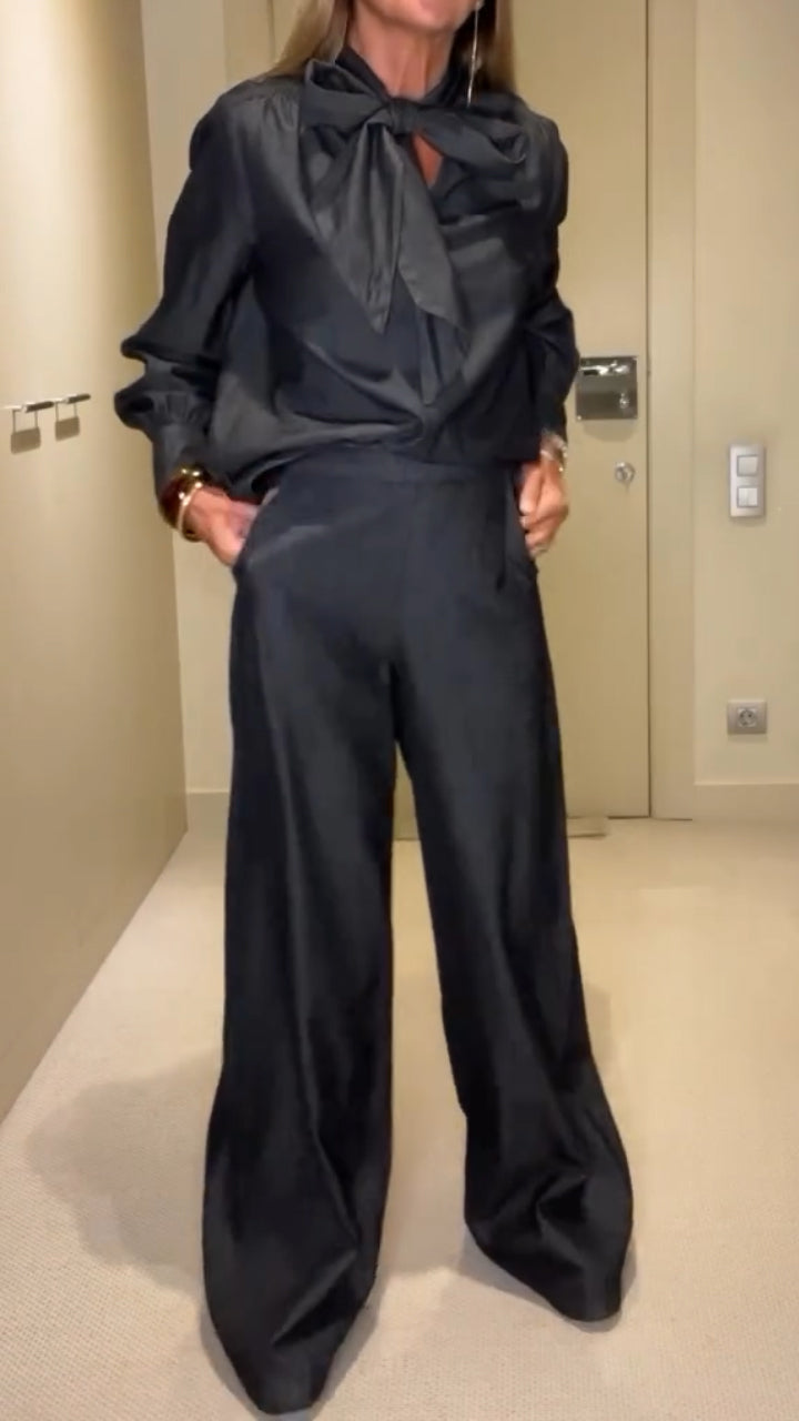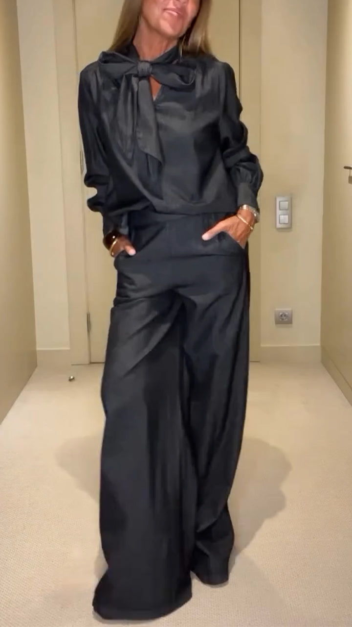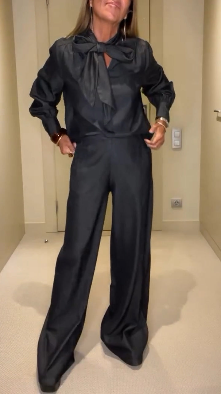 Women V-neck Top + Pants Solid Color Casual Suit