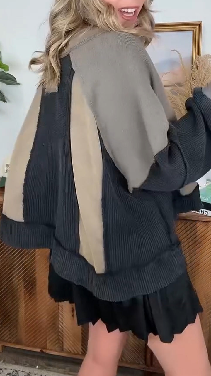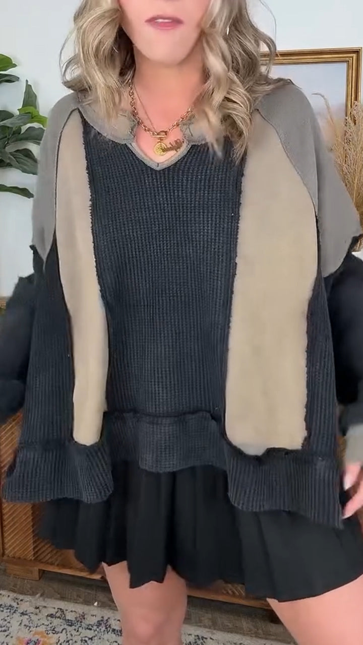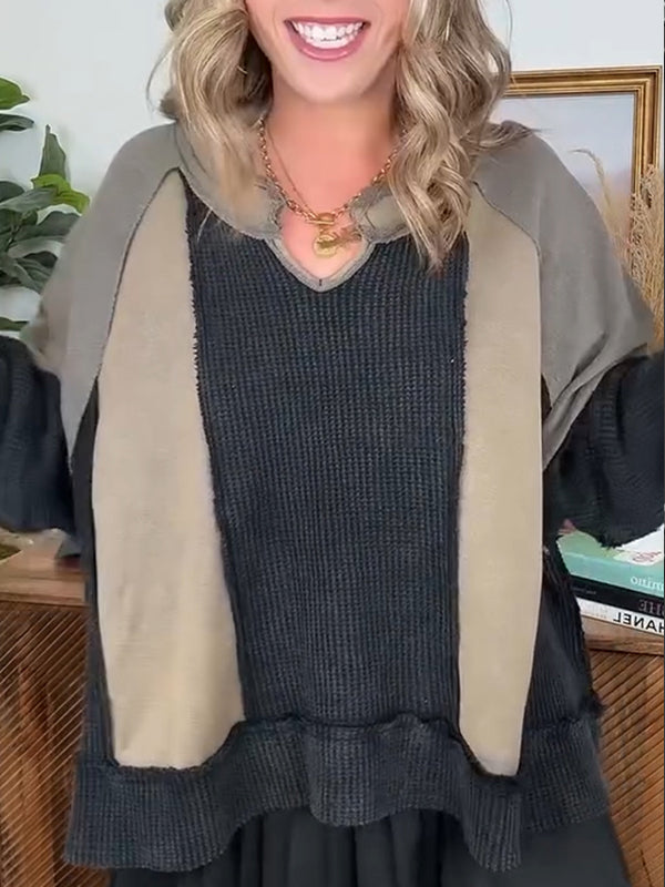 Women Round Neck Stitching Contrast Color Casual Sweatshirt