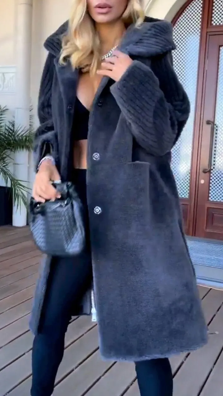 Women's Hooded Long Sleeve Button Casual Long Coat
